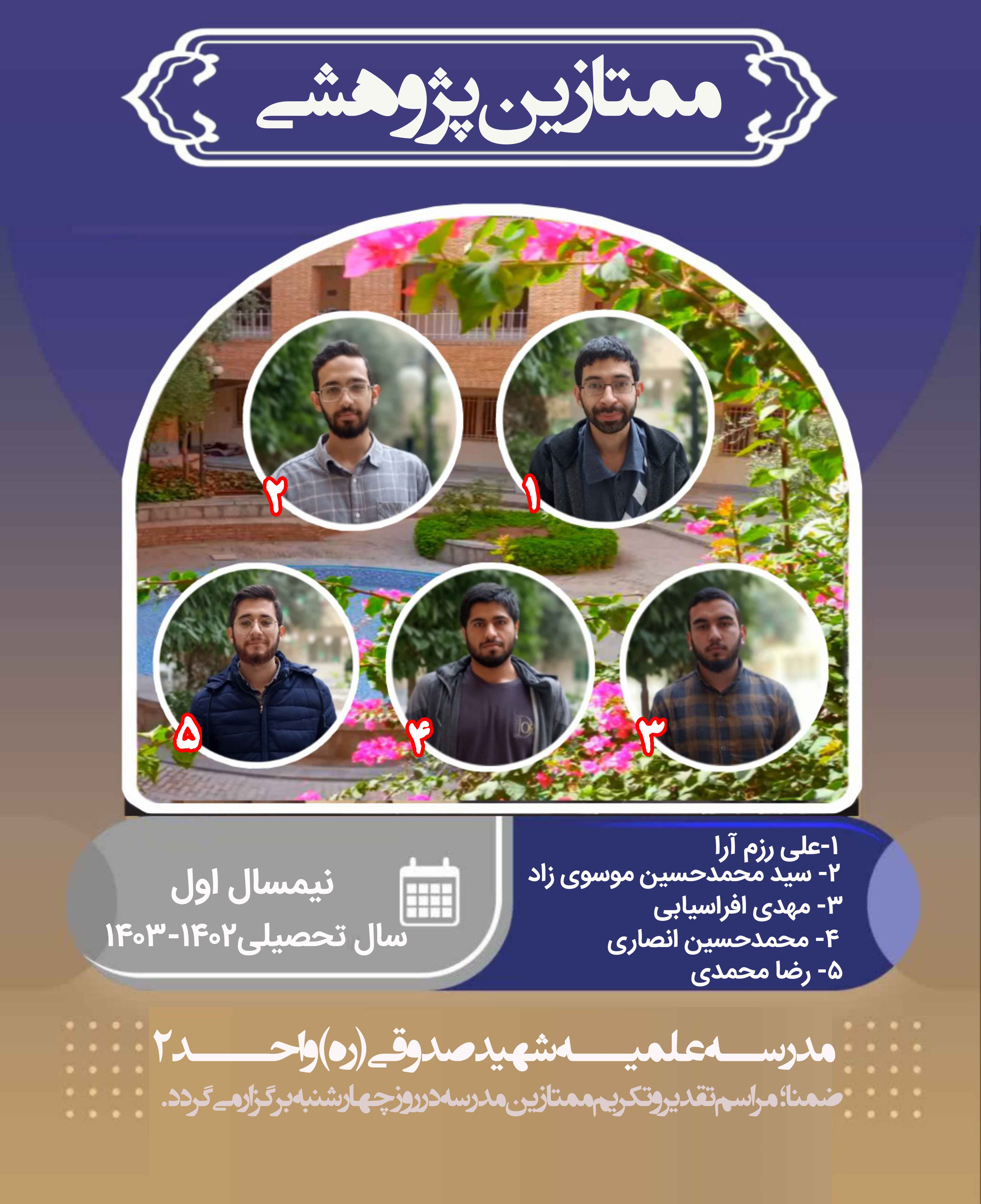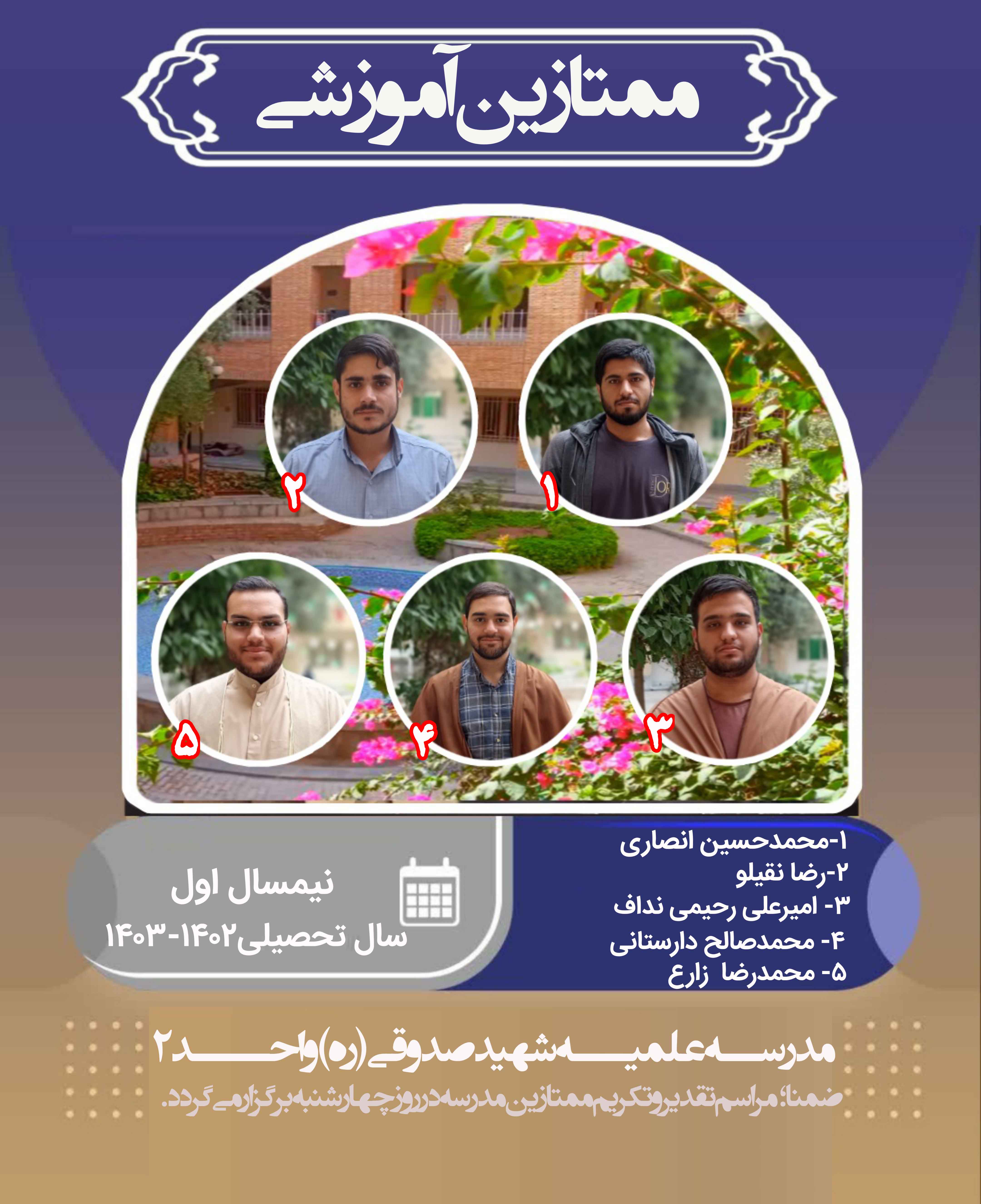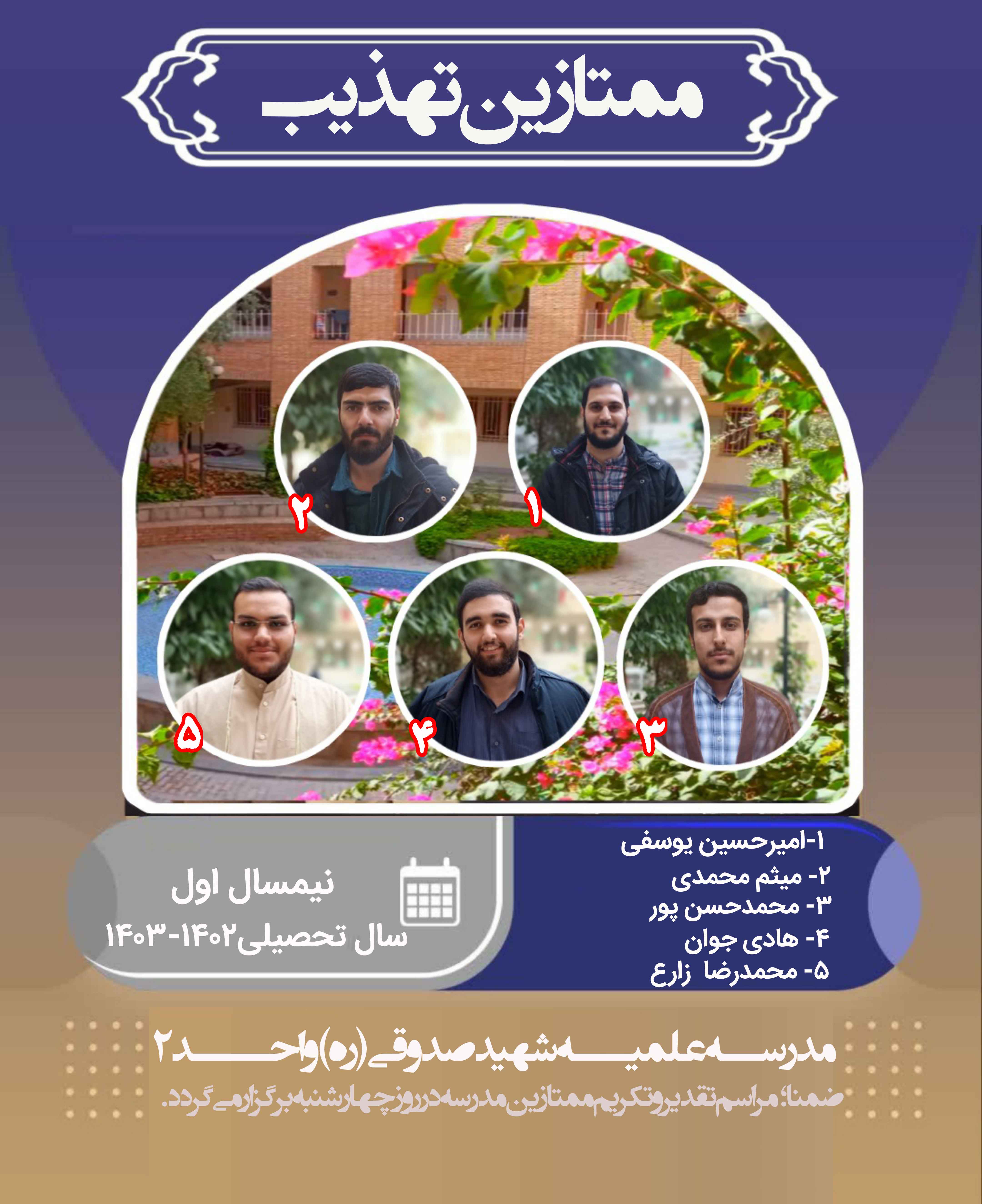 ممتازین مدرسه/آموزش/پژوهش/تهذیب (نیم سال اول 1402-1403)
